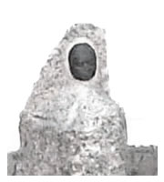 Histórico - Máscara mortuária em bronze sobre pedra tosca.